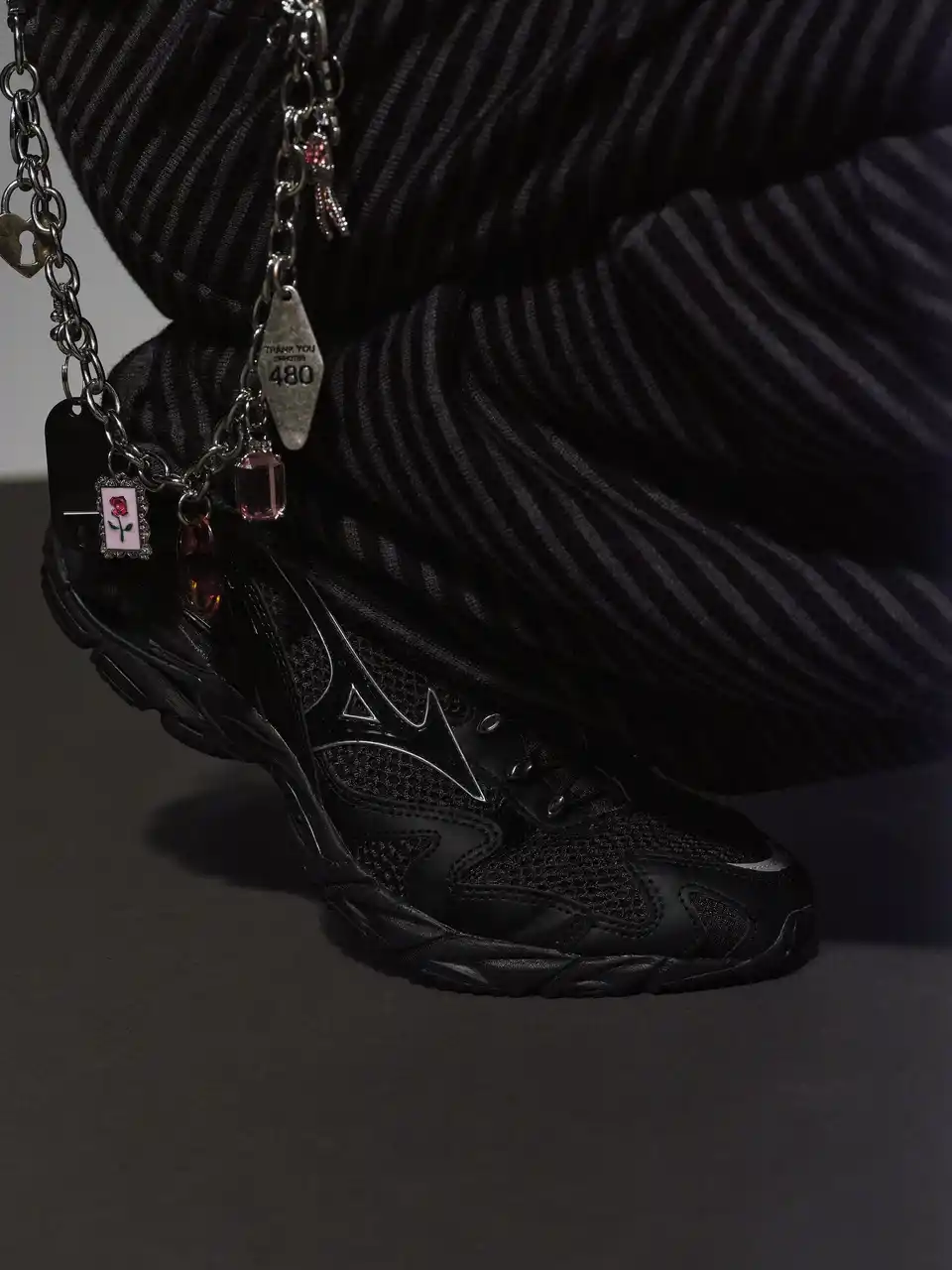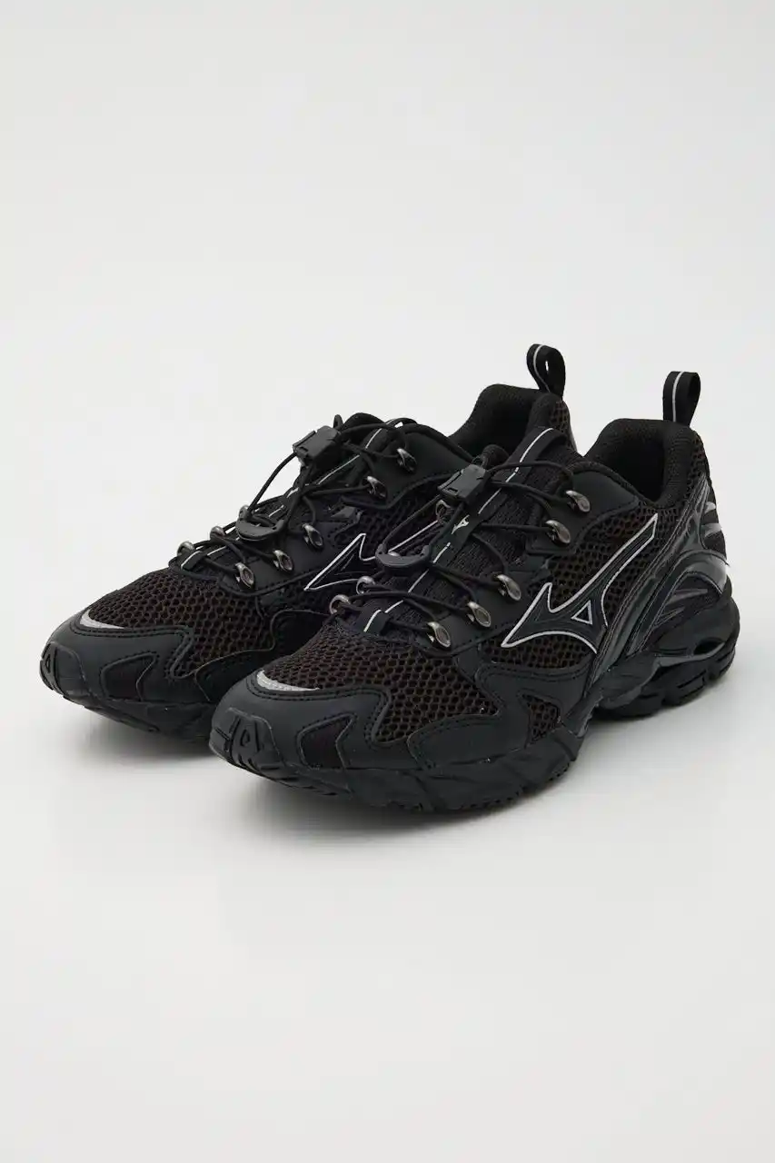 『MIZUNO WAVE』を搭載したランニングシューズ「WAVE RIDER」シリーズの10代目で、今季のSLYのスタイルを足元から引き締める、クールで存在感のある一足です。 |