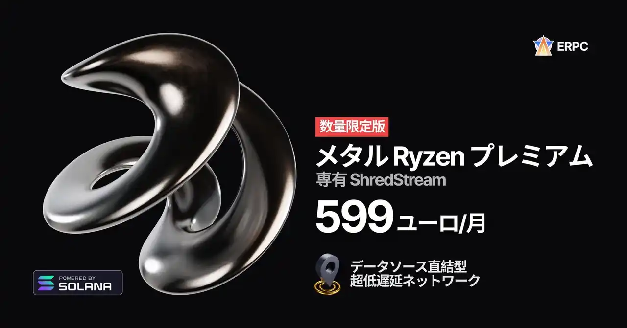 ELSOUL LABO B.V.(本社:オランダ・アムステルダム、代表取締役CEO:川崎文武)と Validators DAO が運営する ERPC は、8月11日に発表した Solana 専有 ShredStream 直結型ベアメタル「SLV Metal App+ プレミアム(Ryzen 7950X、月額240ユーロ)」がニューヨークリージョンにて即完売となり、数量限定の緊急再入荷を実施したことをお知らせします。日頃より多大なるご支援を賜り、心より御礼申し上げます。 |