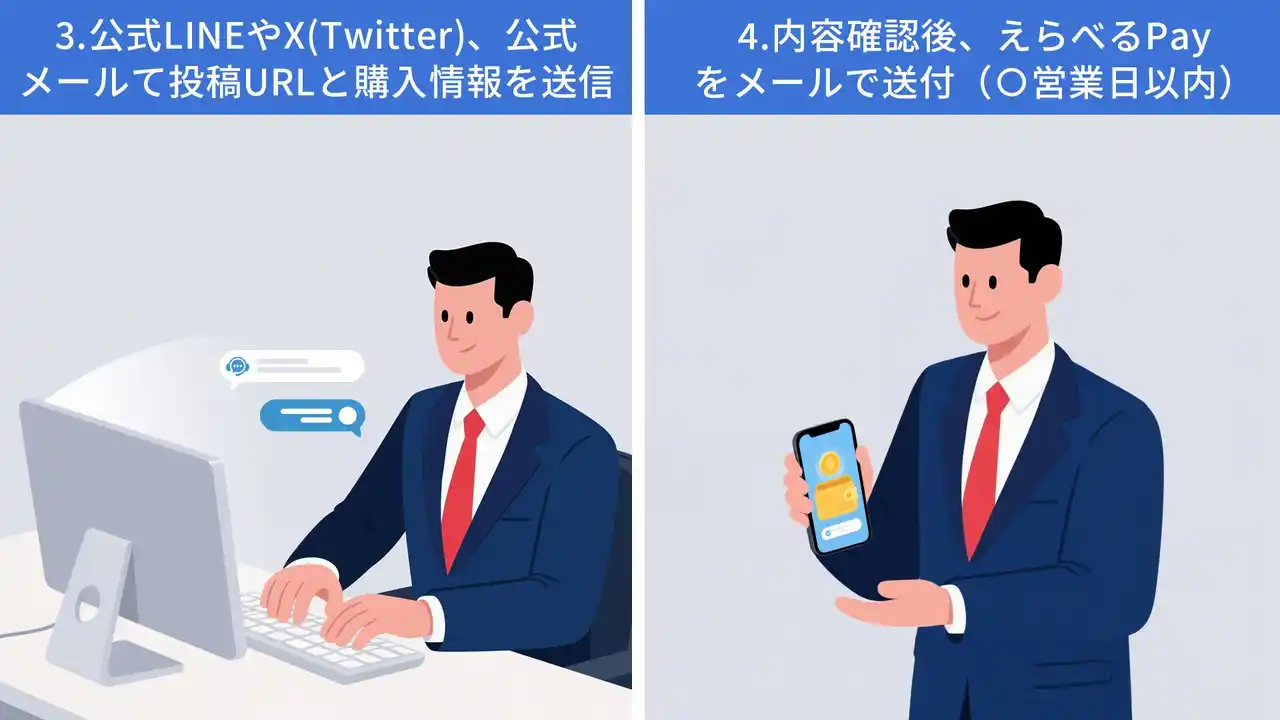 ※「えらべるPay(R)」は、株式会社ギフティが提供するデジタルギフトで、贈られたポイントを使って好きな商品やスマホ決済サービスポイントと交換できます。会員登録やアプリのダウンロードは不要で、保有ポイント内なら複数のサービスを選ぶことも可能です。 |