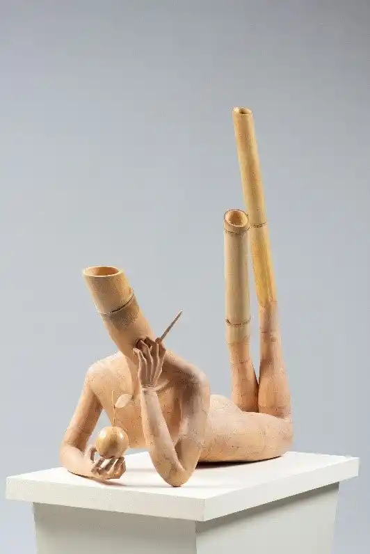 2018年頃より竹材の彫刻などを軸とし、従来から研究し続ける石彫作品と共に幅広く制作する |