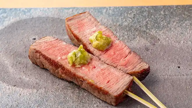 ■ 壱の串 霜降り牛タン串 京紅地鶏他二種 |