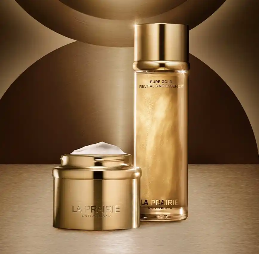時代を超越するエレガントなデザインのピュアゴールドコレクションは、サステナビリティに取り組むラ・プレリーの想いを体現しています。洗練と責任を融合させた芸術的なゴールドのボトルは、未来へ続く無限の命をイメージして、ラグジュアリーと機能性を追求したリサイクルガラスで作られ、光沢とサテンという対照的な仕上げが施されたアルミニウムキャップがアクセントとなって、コレクションの美学と洗練された心地よい手触りを提供しています。 |