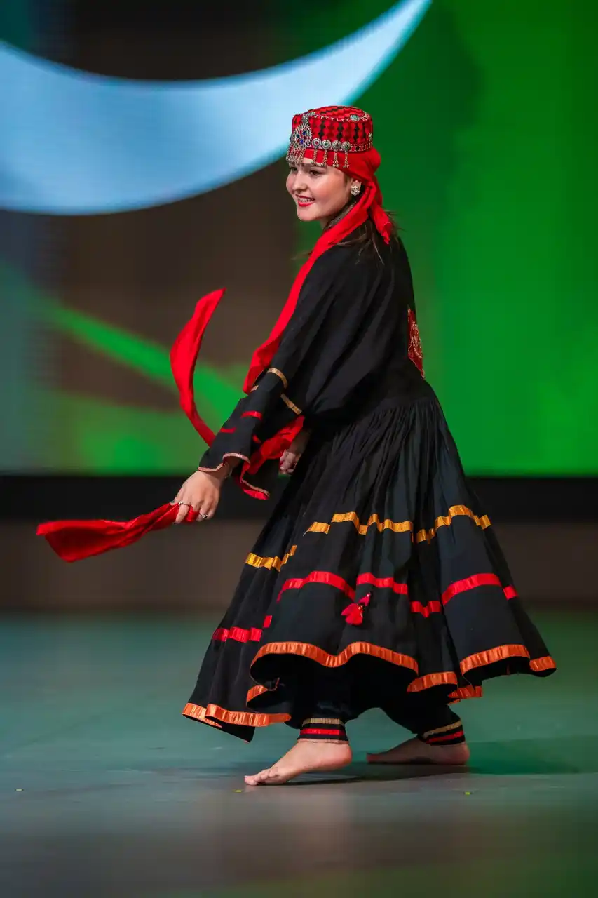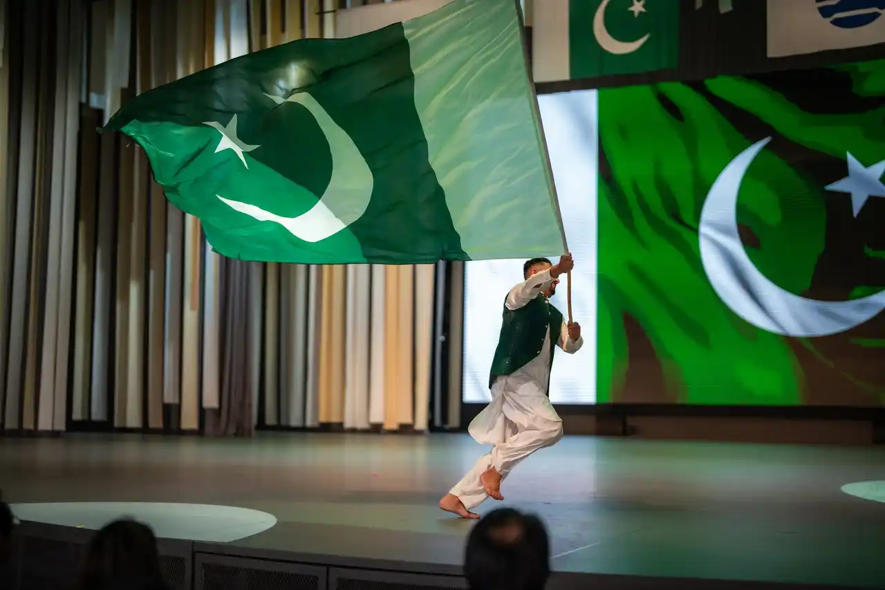 続く文化パフォーマンスでは、パキスタン国立芸術評議会(PNCA)がパンジャブ、シンド、バロチスタン、カイバル・パクトゥンクワ、ギルギット・バルティスタン、カシミールの民族舞踊を披露。多彩な伝統とリズムが舞台を彩りました。見どころとなったのは、仏教遺産を持つ古代都市タキシラをテーマにした「Taxila Odyssey」の物語を踊りで表現し、パキスタンが果たした歴史的役割を称えました。式典は舞踊と愛国歌で締めくくられ、観客は一体となって国の団結と調和を祝いました。 |