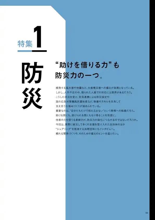 特集1[防災] “助けを借りる力”も防災力の一つ。 |