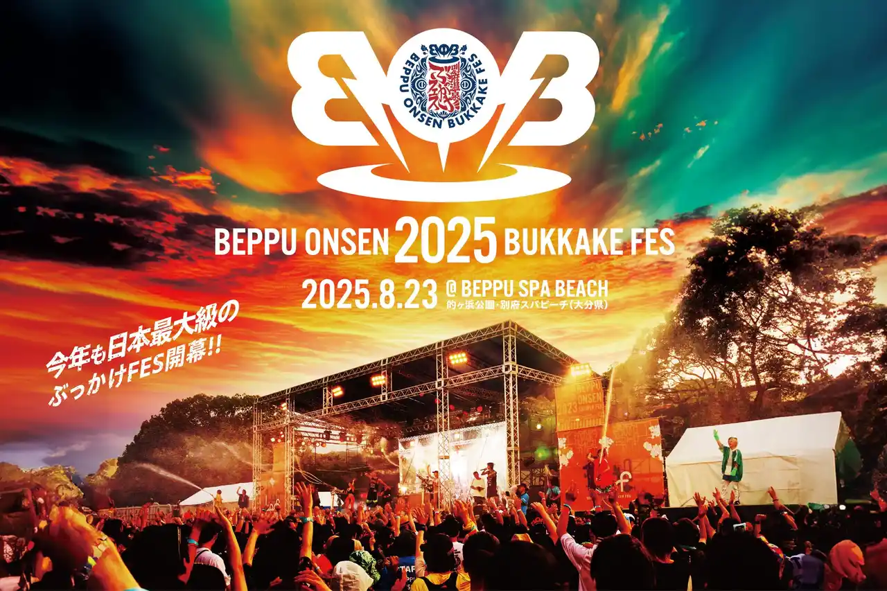 大分県別府市の的ヶ浜公園・別府スパビーチを舞台に開催される、日本でも類を見ない大規模な体験型音楽イベントです。約1,000トンもの温泉水を来場者に放水しながら、著名アーティストのライブやDJパフォーマンスが楽しめる“浴びる音楽フェス”として大きな話題を呼び、2023年の初開催時には約4,000人もの来場者を動員しました。 |