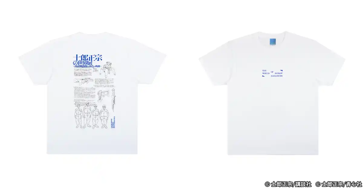 「士郎正宗の世界」を祝い、タイトルを体現したアーカイブデザインのT-Shirts。 |