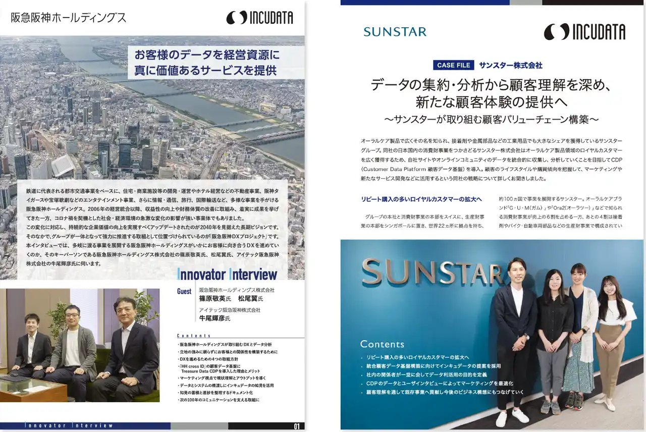 各社支援事例ホワイトペーパーを用意。(上記は、阪急阪神ホールディングス株式会社様、サンスター株式会社様の事例) |