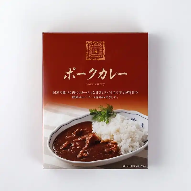 | 国産豚バラ肉の旨みに、フルーティな甘さとスパイスの辛さを合わせた欧風ソースが特徴の「紀ノ国屋 ポークカレー」。とろりと煮込んだソースがごはんに絡み、一皿で満足感のある味わいです。濃厚で奥行きのある旨みは、食卓を豊かにしてくれる定番のごちそうカレーです。 | |||||||||