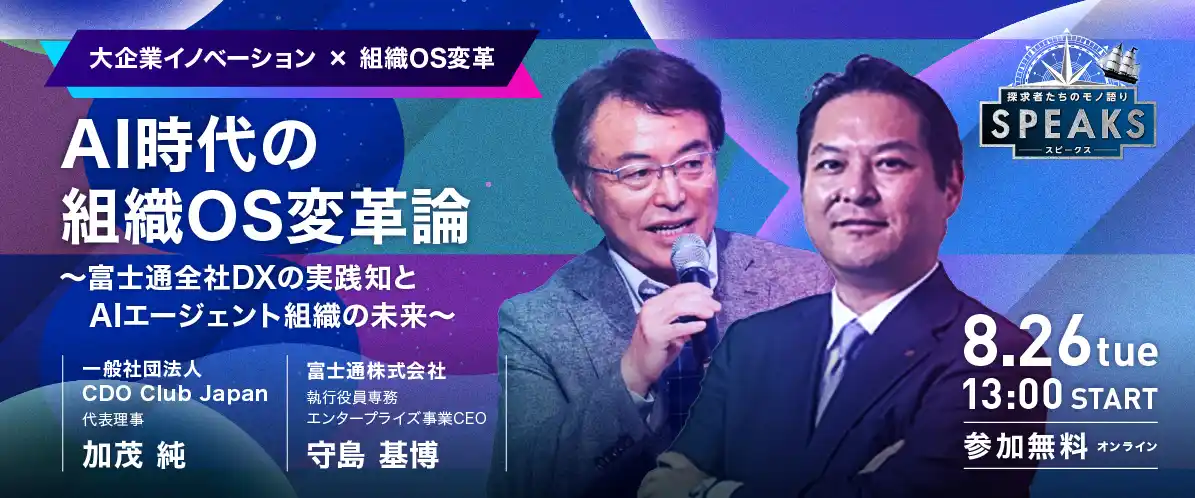 ほかにも、富士通 執行役員の福田氏 × CDO Club Japan 代表の加茂氏による 富士通全社DXとAIエージェント型組織の未来を語る対談に加え、 Sansan・Algomatic・SALESCOREなどトップランナーたちが登壇。 |