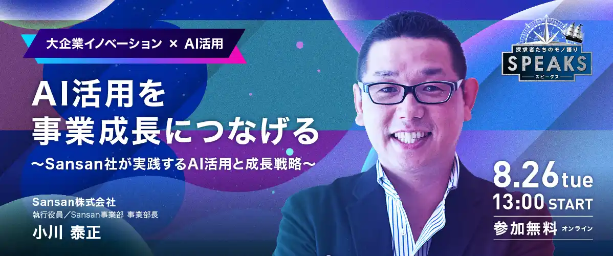 | 株式会社ニューピークス(NEWPEAKS.inc)は8月26日(火)、オンラインセミナーイベント「SPEAKS 大企業の成長戦略サミット」を開催します。 |