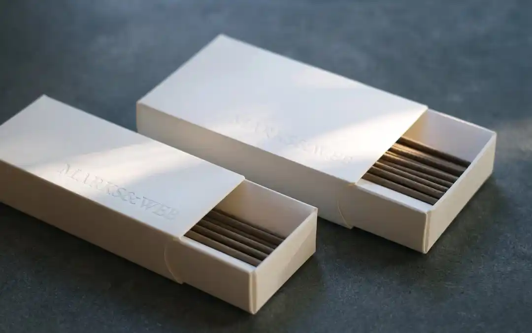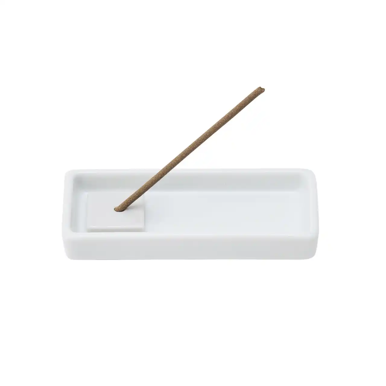 | スティックタイプのお香用のホルダーもご用意しました。長方形のスリムな形状でスペースをとらず、インテリアに馴染むシンプルな白磁素材。約8cmのマークスアンドウェブの「ハーバル インセンススティック」がバランスよく収まるサイズです。陶磁器の産地として知られる愛知県瀬戸市で、職人が一つひとつ丁寧に仕上げているため、どこか温かみのある風合いも特長です。 | ||||||||||