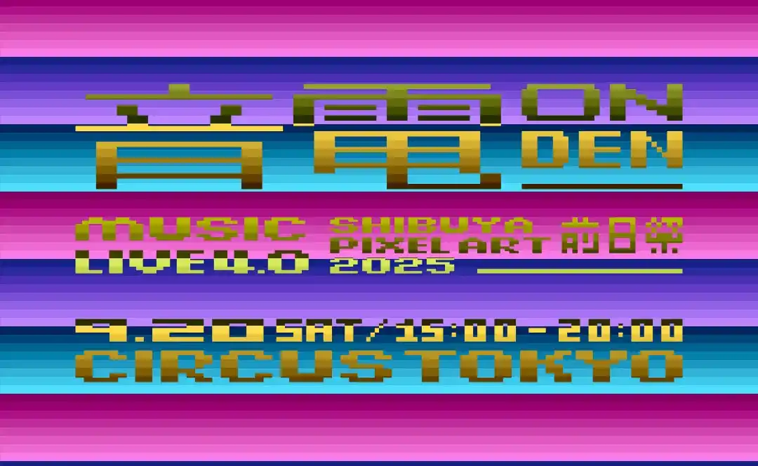 チップチューン、エレクトロ、ゲーム音楽、ピクセルアートが融合する一夜限りのスペシャルライブ「音電MUSIC LIVE4.0」。今回は、国内外のシーンで活躍する気鋭のアーティストたちが集結。「SHIBUYA PIXEL ART 2025」前日祭として、ピクセルアートと音楽の最前線を体感できる、唯一無二の空間が出現します。ライブは、9月20日(土)15:00から20:00まで、渋谷駅・新南口から徒歩約5分の CIRCUS TOKYOにて直接体感できるほか、配信サイトZAIKOでもLIVE配信される予定となっています。 |