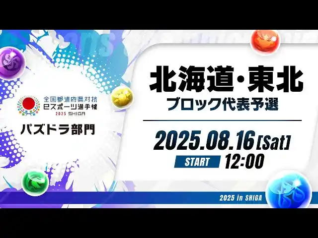 オンラインゲームの企画・開発・運営・配信などを行うガンホー・オンライン・エンターテイメント株式会社は、2025年8月16日(土)に開催された「全国都道府県対抗eスポーツ選手権 2025 SHIGA」のパズドラ部門における北海道・東北ブロック代表予選にて、北海道代表のkonimana選手が見事優勝を果たしたことをお知らせします。 準優勝となった宮城県代表の『人参ドスコイ侍』選手と共に、2025年11月22日(土)、23日(日)に滋賀県で開催される本戦へと駒を進め、全国の頂点を目指します。 |