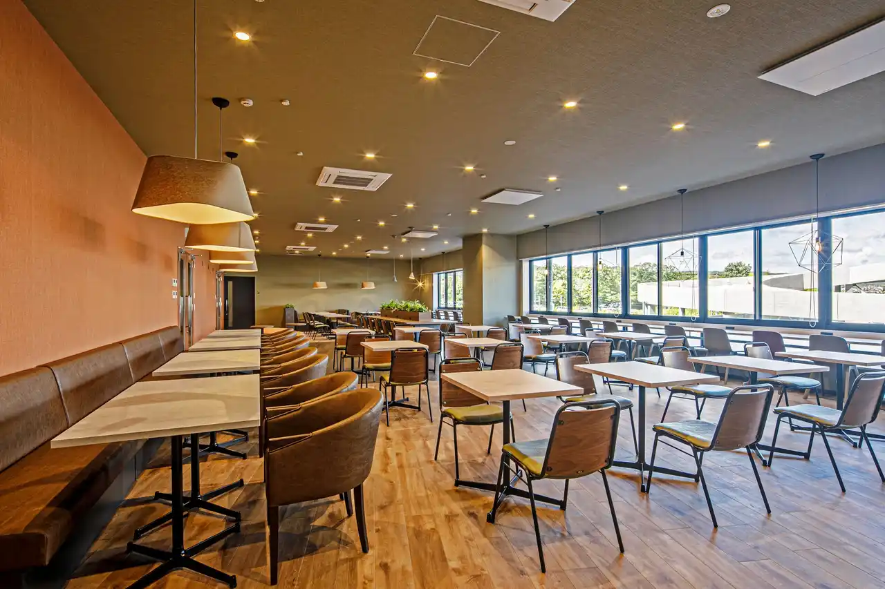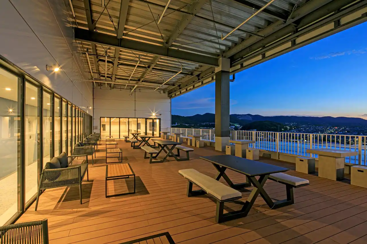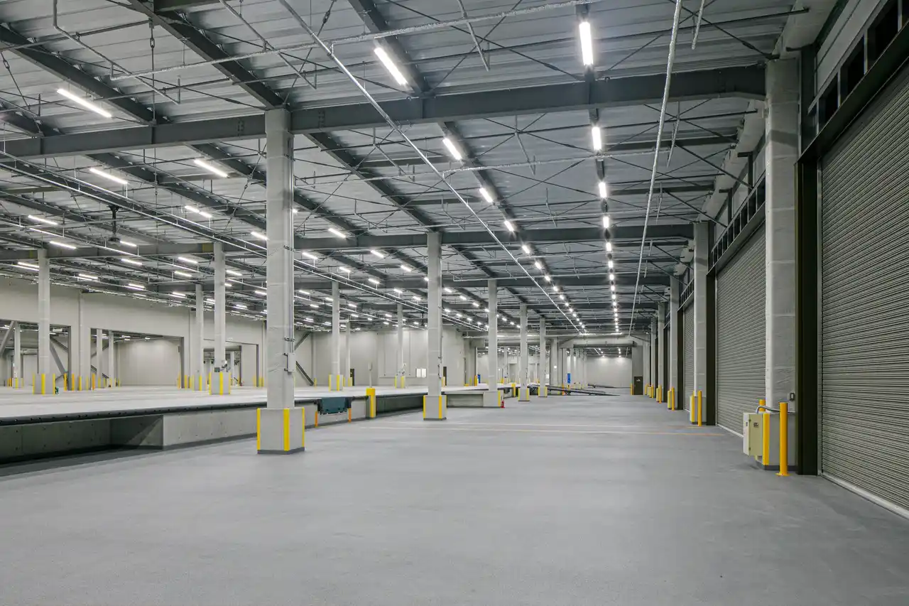 、柱スパン11.6m×10.0m、梁下天井有効高5.5m、ダブルランプウェイにより各階接車が可能な最新型物流施設となっています。各階最大5区画に分割が可能で、1階には52台が接車可能な低床トラックバースを設けることで多様な荷物への対応が可能となり、貨物の搬送および保管の効率化を実現します。また、施設で働く人々の職場環境にも配慮し、共用の休憩室、ドライバー用トイレ、喫煙スペース、屋外テラス、売店などのアメニティ、庫内には大型シーリングファンを設けています。