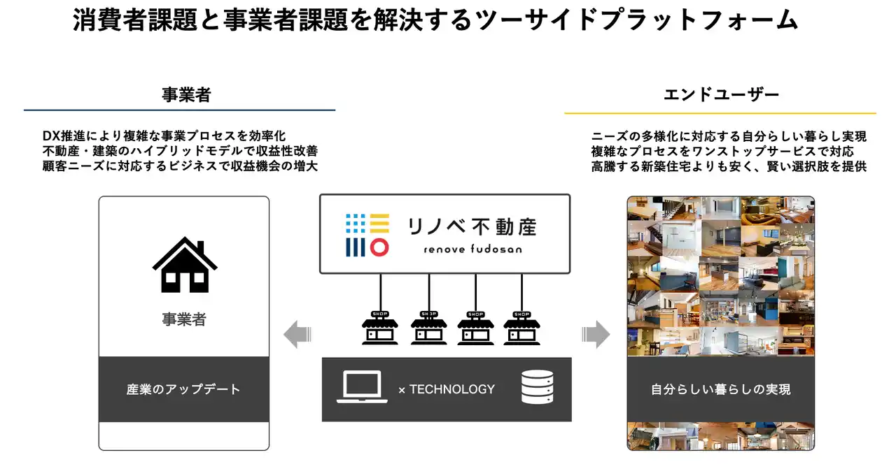 原材料価格の高騰等により新築物件価格の高止まりが続く中、中古住宅やリノベーションへの消費者ニーズは引き続き拡大しています 。このような背景のもと、当社は “「自分らしい」暮らしを「リアル×テクノロジー」で実現する ” というビジョンの実現に向け、プラットフォーム事業を推進してまいりました 。 |
