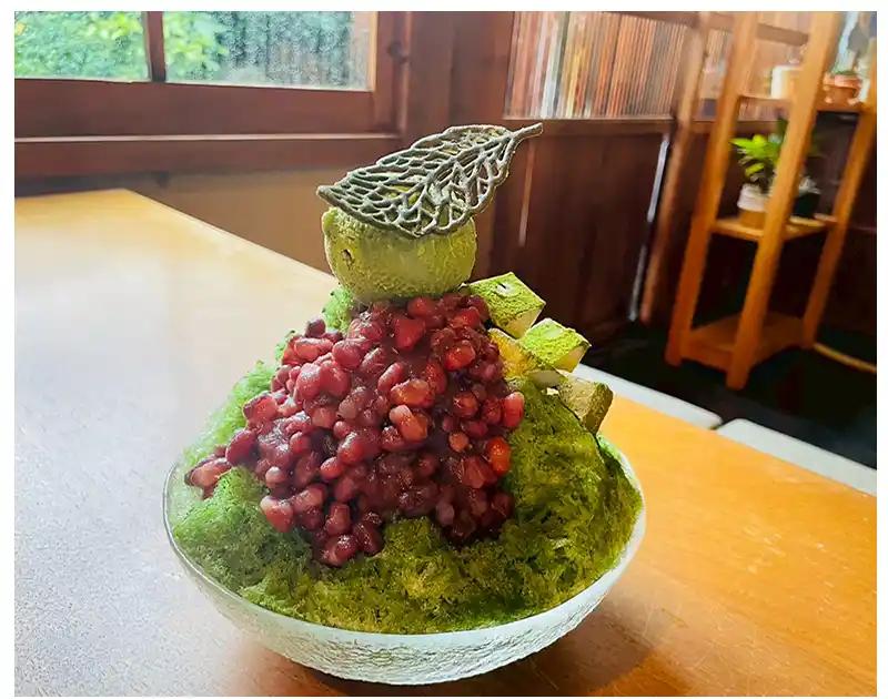 『かき氷』と『冷やし抹茶ぜんざい』。一皿で二度おいしい。