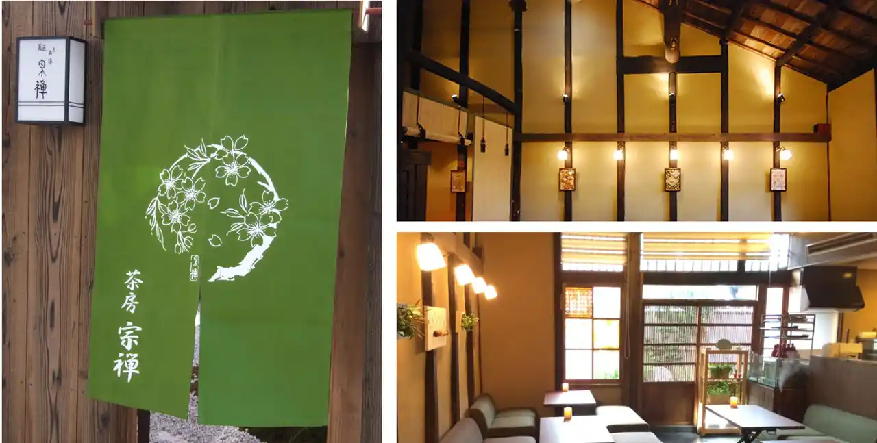 | 京町家茶房 宗禅カフェは、本格的なあられ・おせんべいをはじめ、あられ職人ならではの発想を取り入れた「焼きアイス」や、1つのグラスに8層17種類のハーモニーをお楽しみいただける京都西陣パフェ、そして現在テレビやマスコミに多数ご紹介いただいている凍りわらび餅、また、ご自身で焼いていただく体験型のメニューなどもお楽しみいただける築130年の京町家カフェです。 | |||||||||