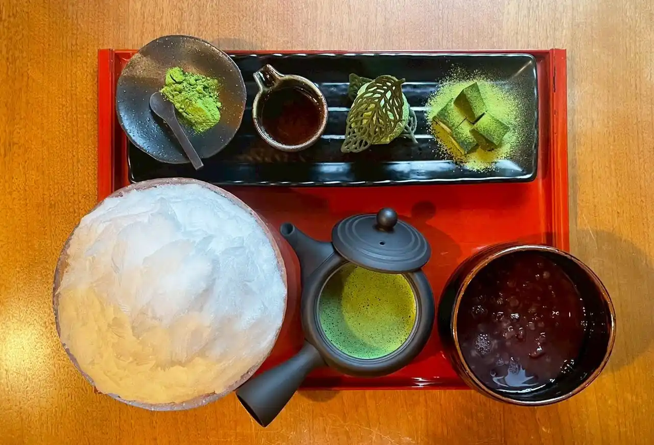 | 『かき氷』と『冷やし抹茶ぜんざい』。一皿で二度おいしい。 | |||||||||