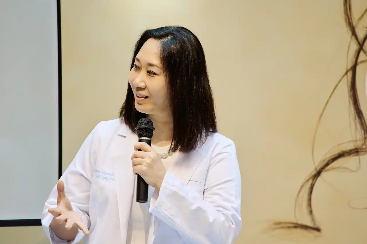 トークの終盤では、「美しい髪」についてゲストのお二人に改めて質問。まずは、浜中医師より医学的に「美しく健やかな髪を保つ方法」について教えていただきました。浜中医師は、「若い頃はパーマやカラーで見た目を美しくしようとして、どうしても髪が傷んできますよね。そして分け目がぺたんとしてきたら、初めて『シャンプーを変えようかな』