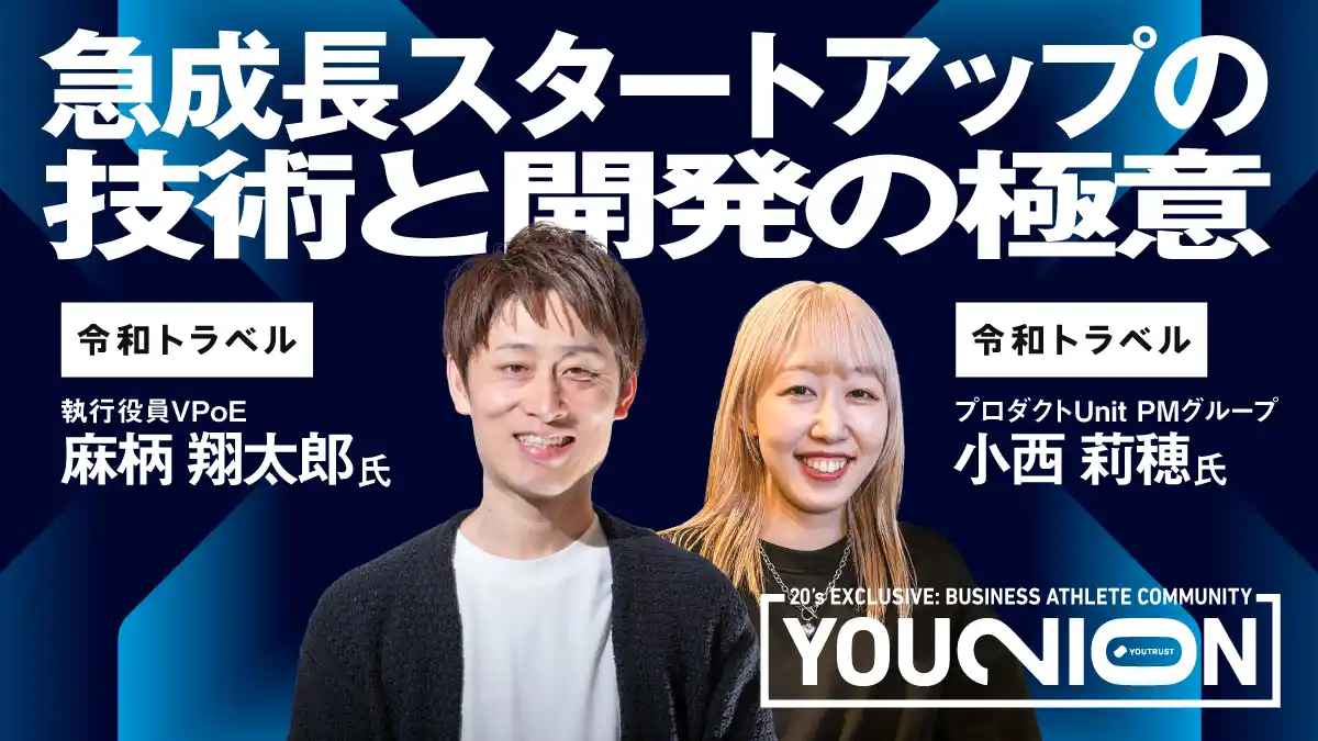 株式会社令和トラベル 執行役員VPoE 麻柄 翔太郎氏 × 同社 PMグループ 小西 莉穂氏 |