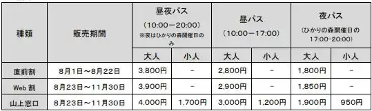 参加費:無料 ※ただし、入場には別途鑑賞パスポート(昼パス)又はエリア入場券(大人500円、小人200円)が必要 |
