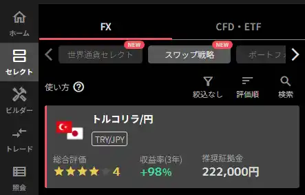 ”選ぶだけで始めることができるトライオートFXの自動売買セレクト”に「スワップ戦略」カテゴリーが追加され、「トルコリラ/円」が登場しました! |