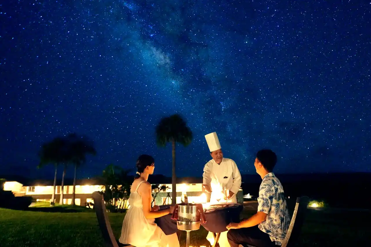 日本最南端のアイランドビーチリゾート「はいむるぶし(所在地:沖縄県八重山郡、総支配人:山口直宏)」は、「日本航空株式会社(所在地:東京都品川区、代表取締役社長:鳥取三津子)」と共に昨年、好評を博した「星降るレストラン in 小浜島」を9月1日から10月31日までの期間限定で開催いたします。「星降るレストラン」は、岡山県・美星町、北海道・弟子屈町、鹿児島県・徳之島町で開催されており、沖縄県・小浜島は4つ目の開催地となります。西表石垣国立公園の一部である小浜島は、国際ダークスカイ協会が認定する「星空保護区」です。星空の下、特別なディナーを堪能できる「星降るレストラン」の食体験とあわせて、新しく生まれ変わったはいむるぶしをぜひご体験ください。 |