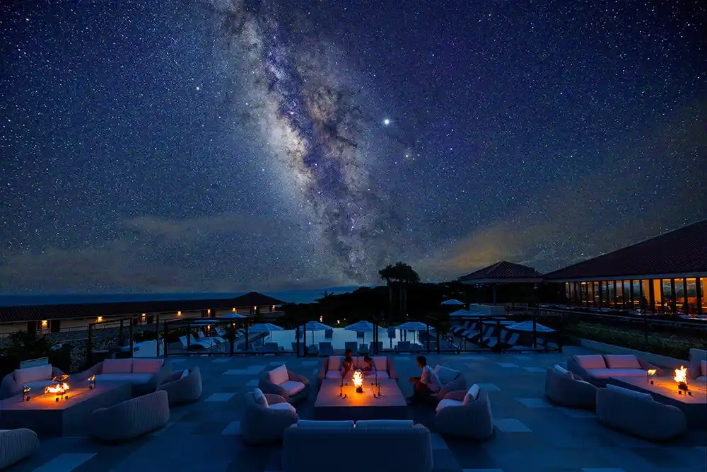 ゆったりとした南国の雰囲気を感じるロケーションで刻一刻と変わりゆく空、頭上に広がる世界有数の満天の星を眺めながら、沖縄の恵みをご堪能ください。 |