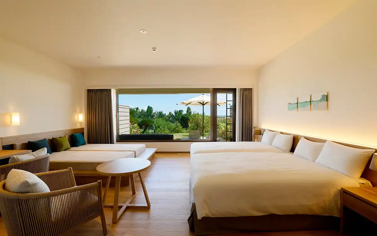Pool」やウェルネスエリアが誕生。レストランは八重山の自然や食材を活かした形態に刷新され、一部客室は40平方メートル のプライベートガーデン体験が楽しめる「ガーデンテラス・プレミアムルーム」に改装されました。自然豊かな敷地内や世界自然遺産の西表島等を満喫できる唯一無二のエクスペリエンスを提供しております。 |