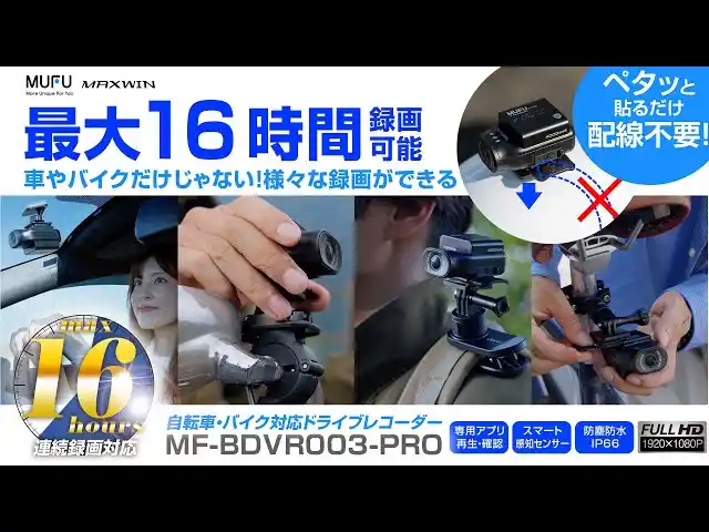 カー用品・バイク用品ブランドMAXWIN(運営:昌騰有限会社、所在地:大阪府泉大津市)は、人気シリーズMUFUの配線が不要で1秒で設置が可能な車&バイク&自転車用ドライブレコーダー『MF-BDVR003-PRO』を、2025年8月19日より応援購入サービス Makuakeにて先行販売開始いたしました。 |