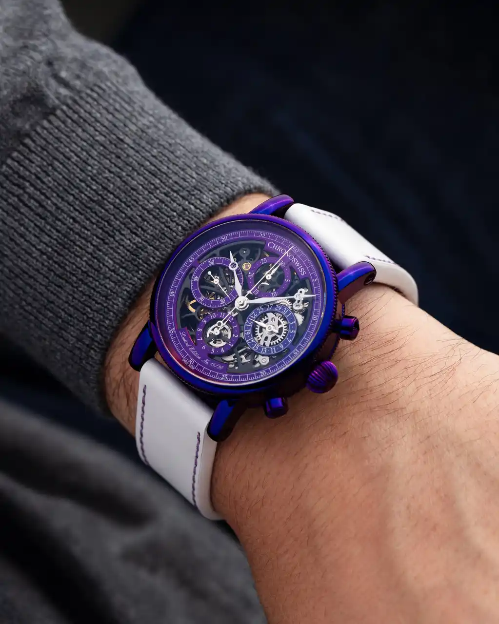 スイスの高級機械式時計クロノスイスは、『オーパス パープルレイン』を全国の正規代理店にて発売いたします。創業者ゲルト・R・ラング氏がクロノグラフの概念を再定義した傑作「オーパス」の誕生30周年を記念した、限定モデルです。 |