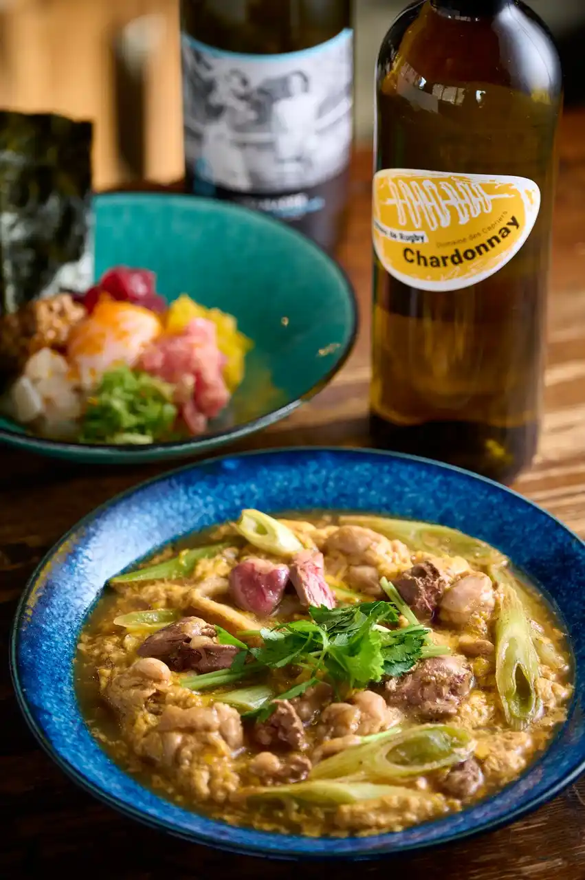 | 名物は、炭の香ばしさと山椒味噌の辛味がクセになる「親鳥のもも焼き 山椒味噌」や、複数部位の旨味をとじ込めた贅沢な「地鶏 親子とじ」。そのほか、ガーリックチキンフリットやカラマリフリットといった洋の要素を取り入れた料理もジャンルを問わない自由な発想でラインアップ。 | |||||||||
