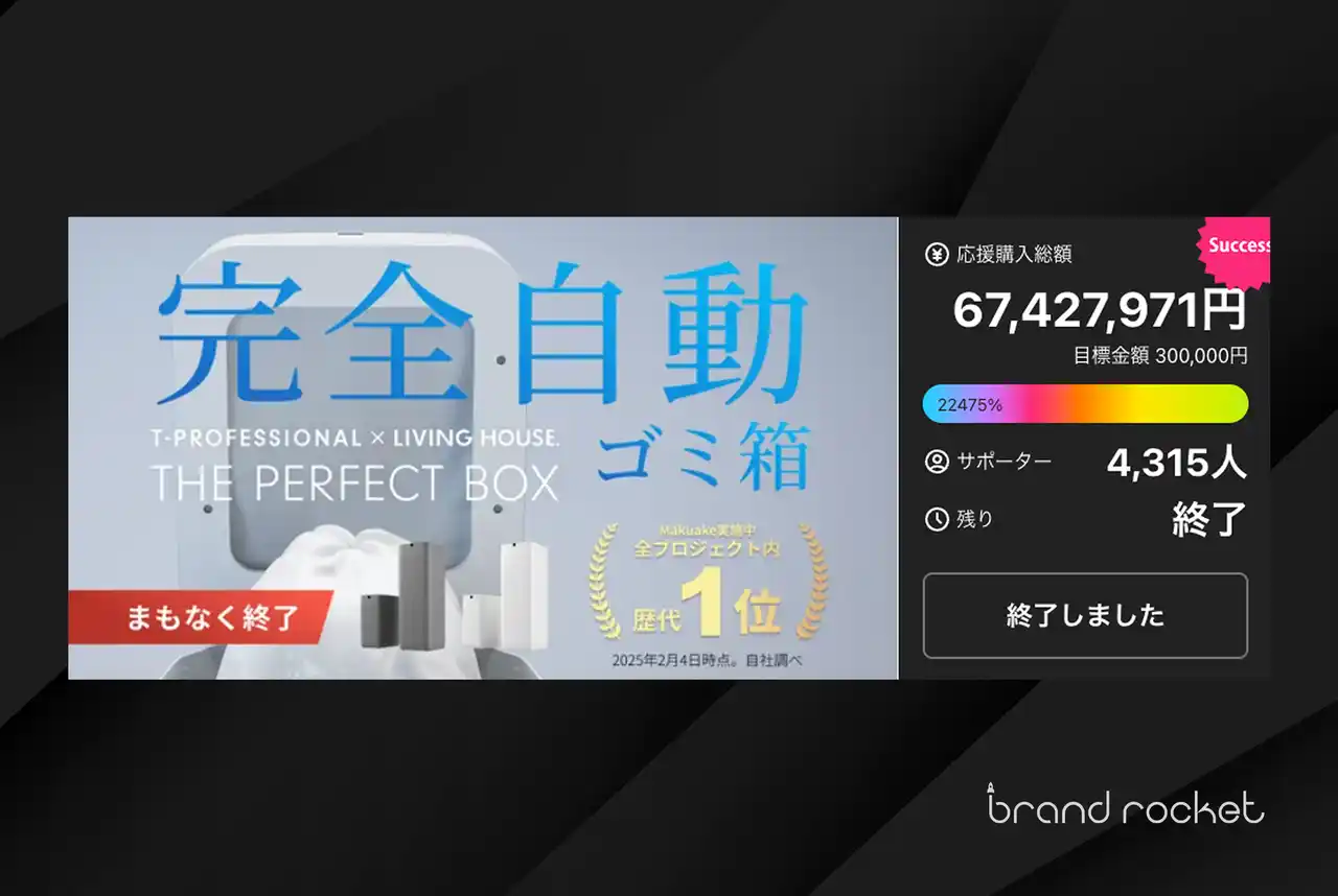 新規ブランドのローンチから軌道に乗せるまでのサポートに特化した専門集団、株式会社ブランドロケット(本社:東京都目黒区、代表:道端孝助、以下:ブランドロケット)は、当社がブランディング・マーケティング支援を行った各プロジェクトにおいて、応援購入サービス「Makuake」を始めとした総支援ローンチ額が創業から約3年間(2022年10月13日~2025年7月末日時点)で20億円以上を達成したことをお知らせいたします。 |