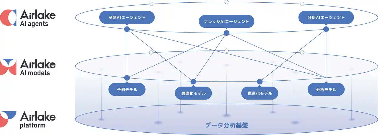 | 「Airlake」は、データ分析・AIエージェント構築をトータルに支援するプラットフォームです。自然言語での対話を通じて高度なデータ分析や業務を自動化し、全社員の「AIネイティブな働き方」を実現します。 | |||||||||