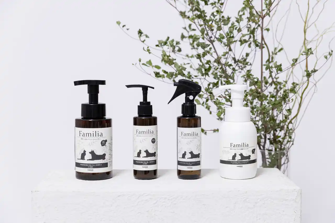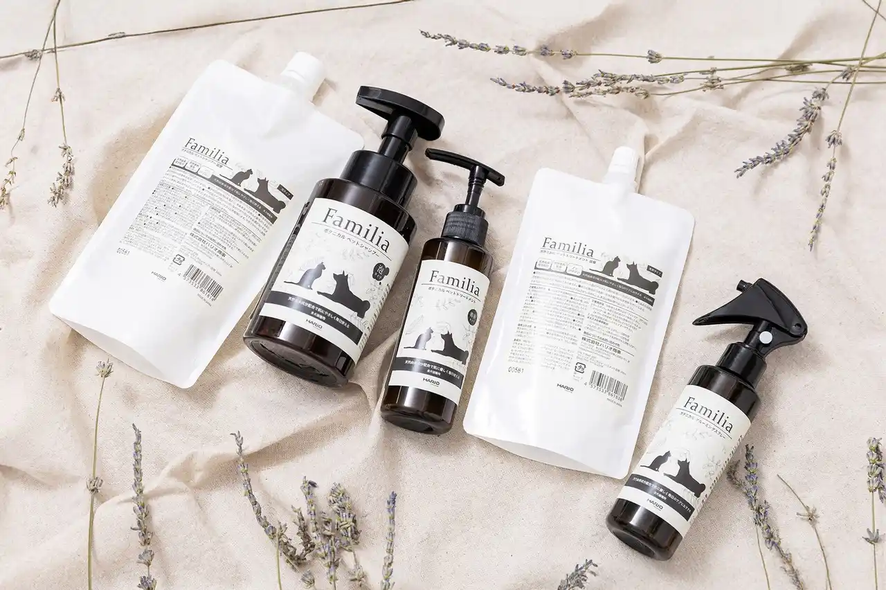 ペットにも飼い主にも、やさしい自然由来ケアを届けたい。そんな想いから生まれたのが「Familia(ファミリア)」シリーズです。 |