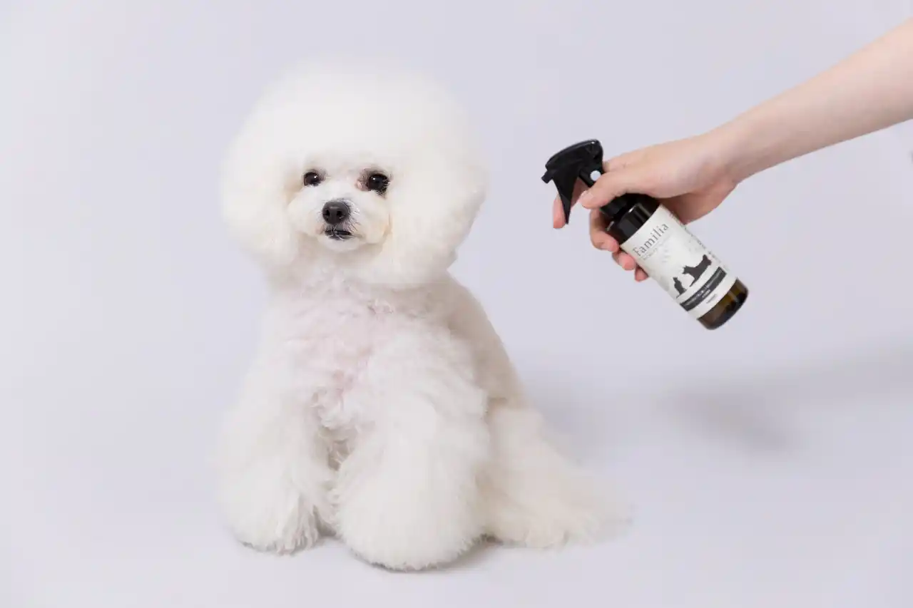 シャンプーの合間に自然由来成分配合のスプレーでこまめにケアして清潔で美しい被毛へ |