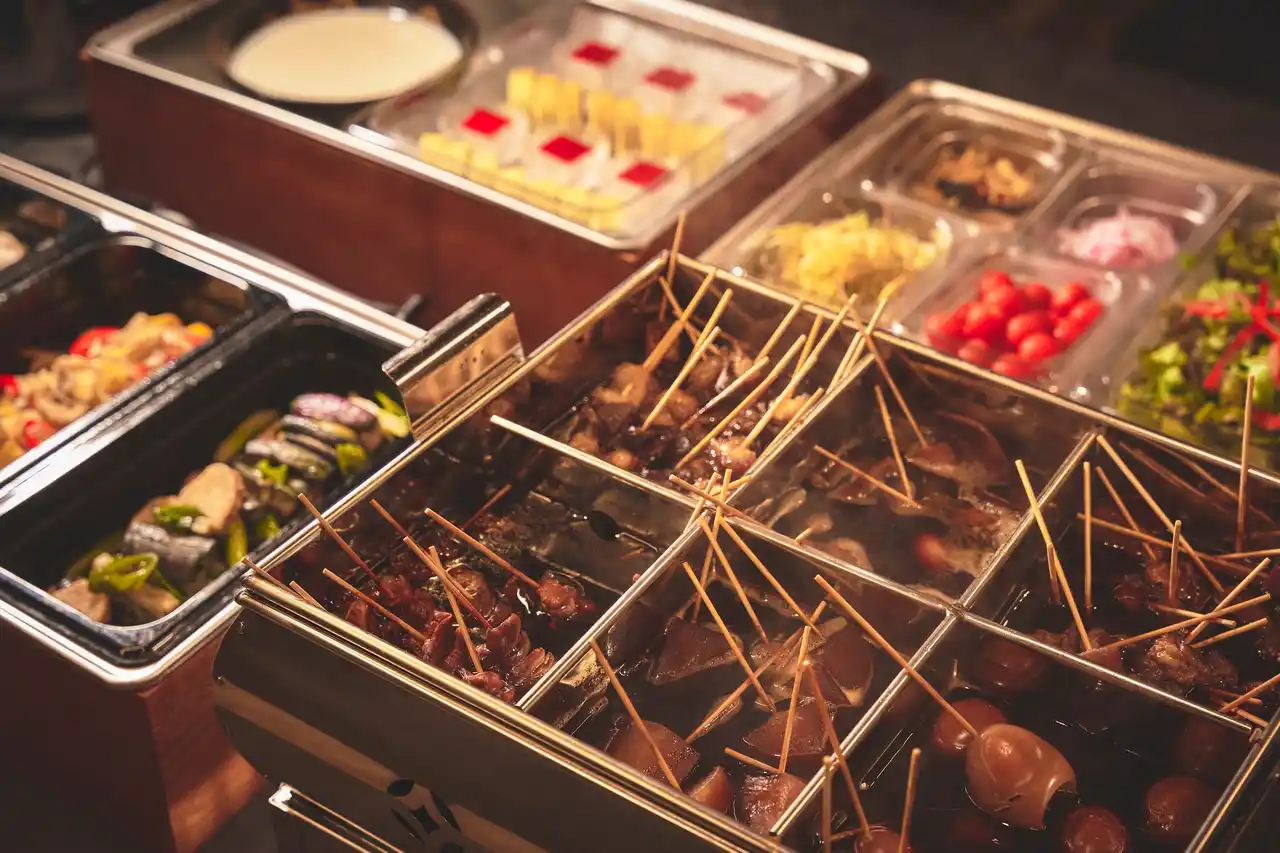 | メニュー:静岡おでんメインのビュッフェ、おつまみプレート、溶岩プレートで提供するお肉料理 | ||||||||||||||