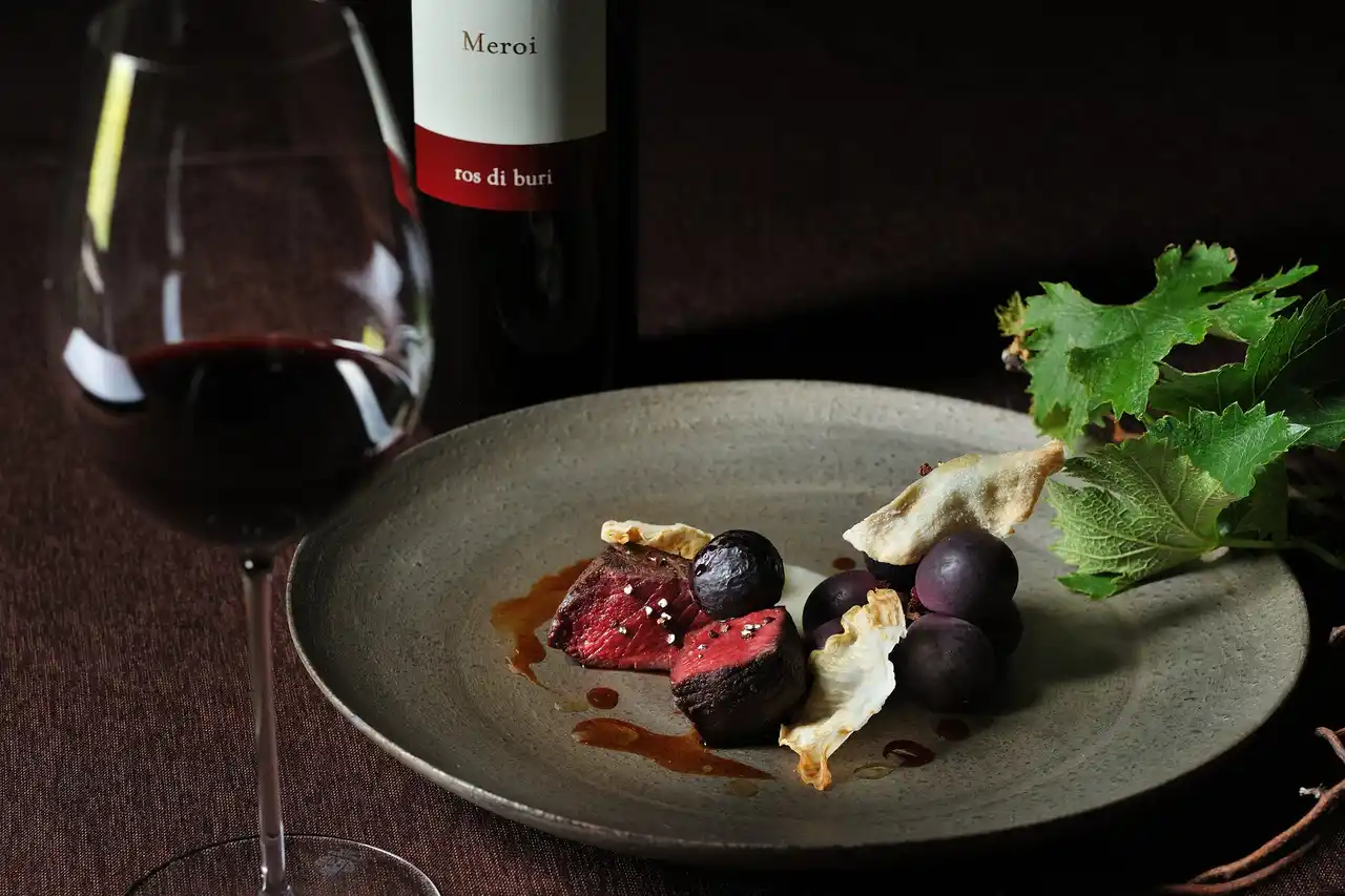 | 「鹿肉と葡萄のアロースト」×「Ros di Buri 2021」(メロイ) | |||||||||||||||
