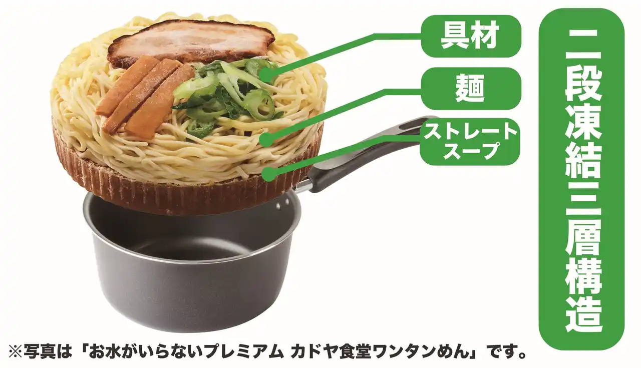 凍結スープの上に麺・具材を重ねてさらに凍結させる「二段凍結 |