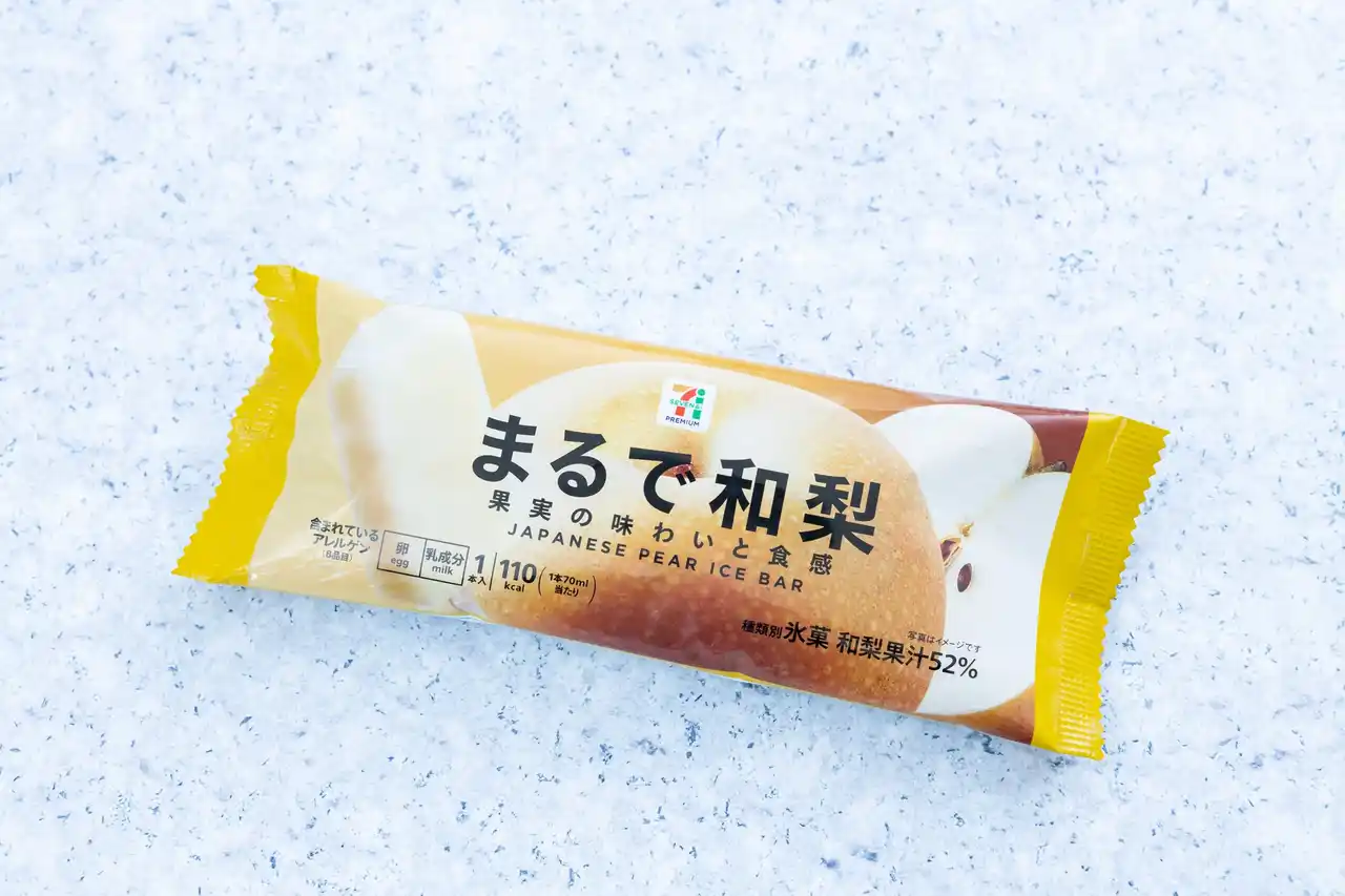 「セブンプレミアム まるで和梨」は、数ある梨の中でも特に人気の高い「幸水・豊水」の魅力を存分に凝縮したアイスバーです。豊水はその名の通り、果汁を豊富に含んだみずみずしい口当たりが魅力の梨。ジューシーで甘みと酸味のバランスが良く、特有のシャリシャリとした食感が、夏の終わりにぴったりの爽やかな涼を感じさせてくれます。 |