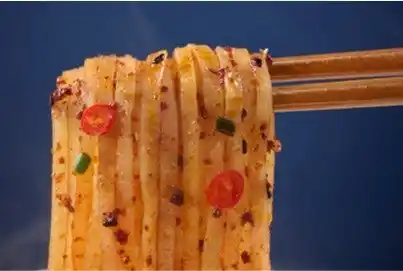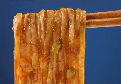 中国の麺料理の一種である「面皮(メンピ)」。中国国内では日常的に親しまれています。この面皮を日本人の好みに合わせて改良し、すすりやすくしっかり味の絡む適度な太麺、つるつるもちもちの食感、それが熱湯3分で簡単に味わえることを追求して開発したのが『麺ピー』です。 |