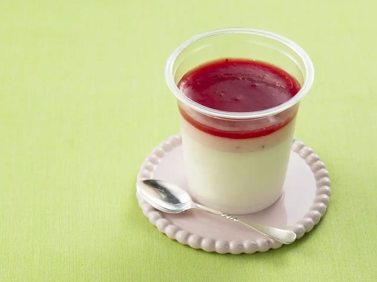 豊かな風味と甘みを感じられる苫小牧産苺のソースとなめらかなミルクプリンを組み合わせました。真っ白なミルクプリンに鮮やかないちごソースが彩りを添え、見た目もかわいらしい一品です。 |