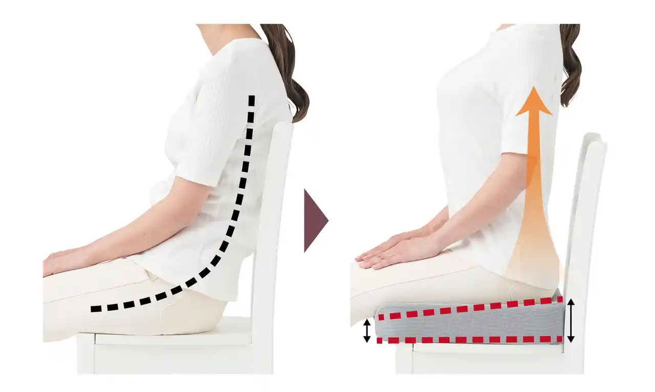 | 前傾斜設計で、座るだけで自然に背筋が伸び、腰や背中への負担を軽減。無理なく美しい姿勢へと導きます。 | |||||||||||||||