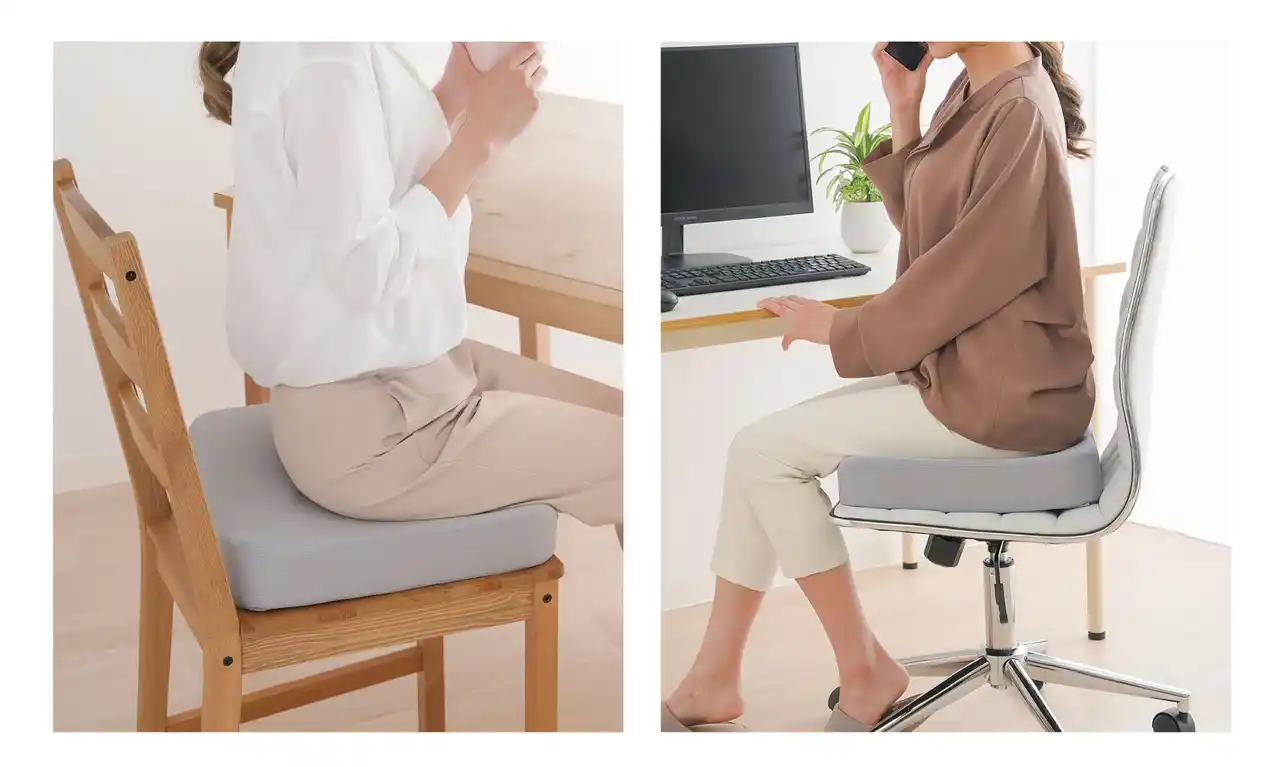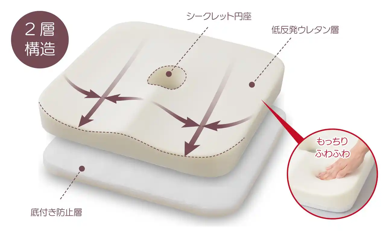 | 骨盤と姿勢を考えた底付き防止のハード素材と低反発ウレタンのソフト素材の2層構造で快適な座り心地を実現! | |||||||||||||||