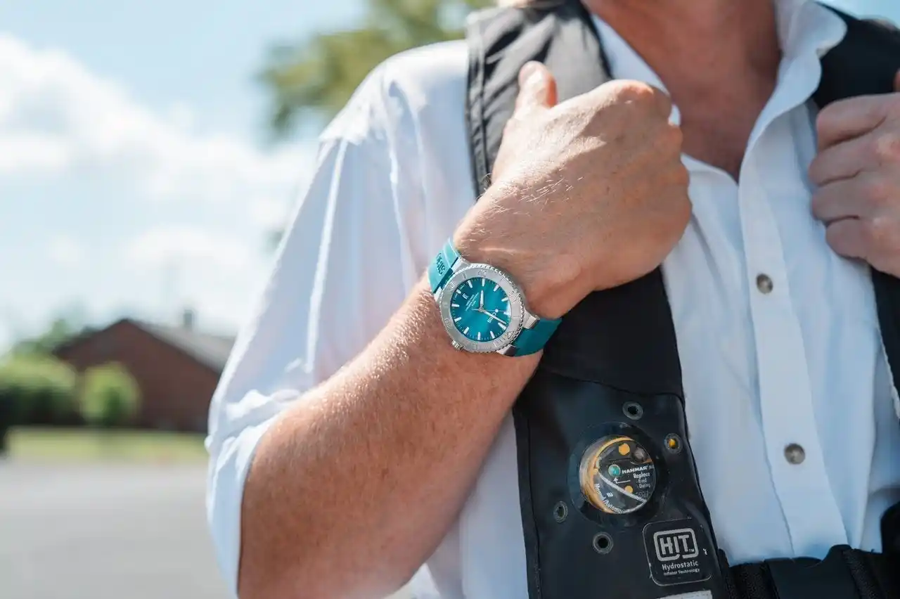 ニューヨークハーバー・ リミテッドエディション II を着用するピート・マリノ フスキー氏。販売収益はビリオン・オイスター・プロ ジェクトを支援するために活用 |
