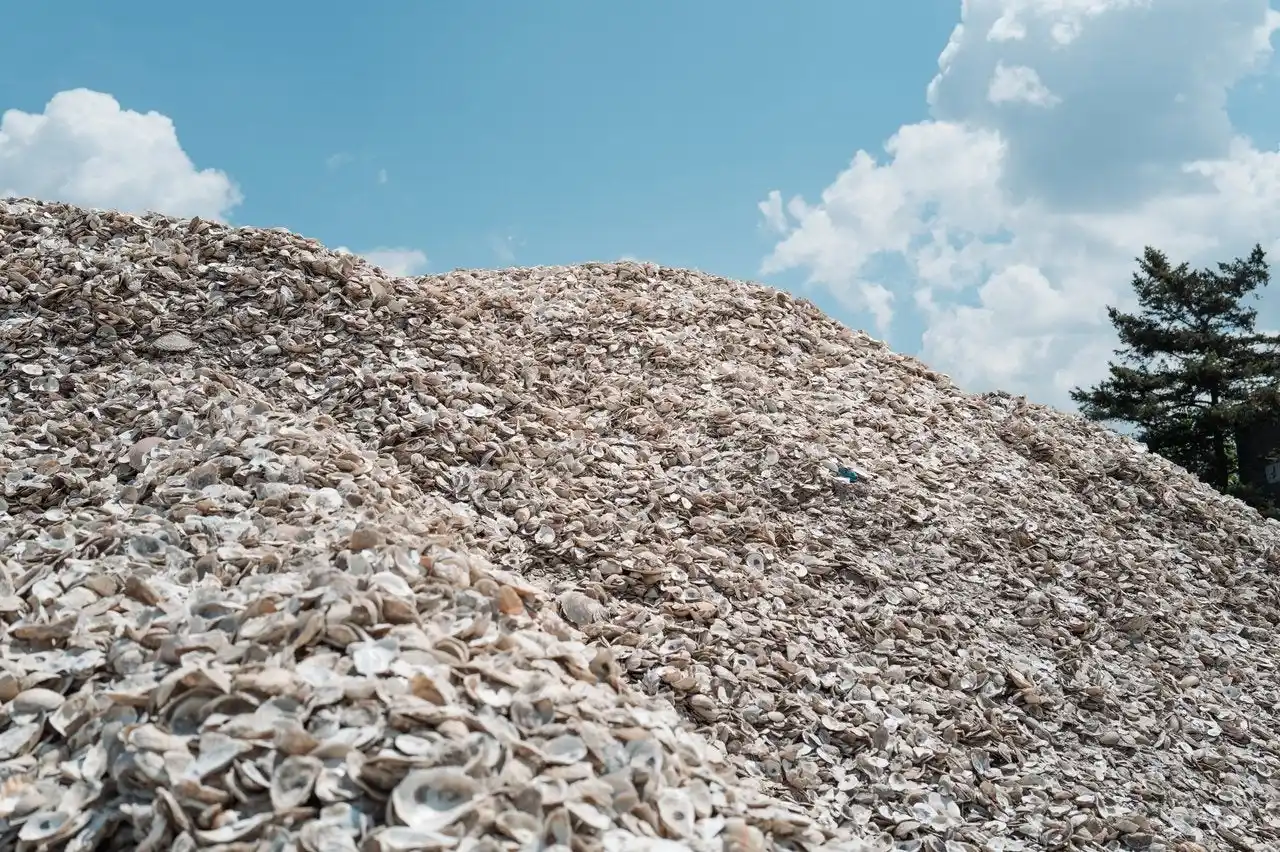 地元のレストランから回収された約1,300トンを超えるオイスターの殻は再利用されている |