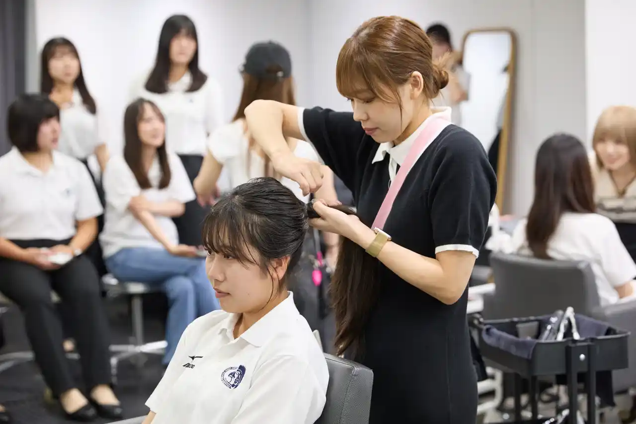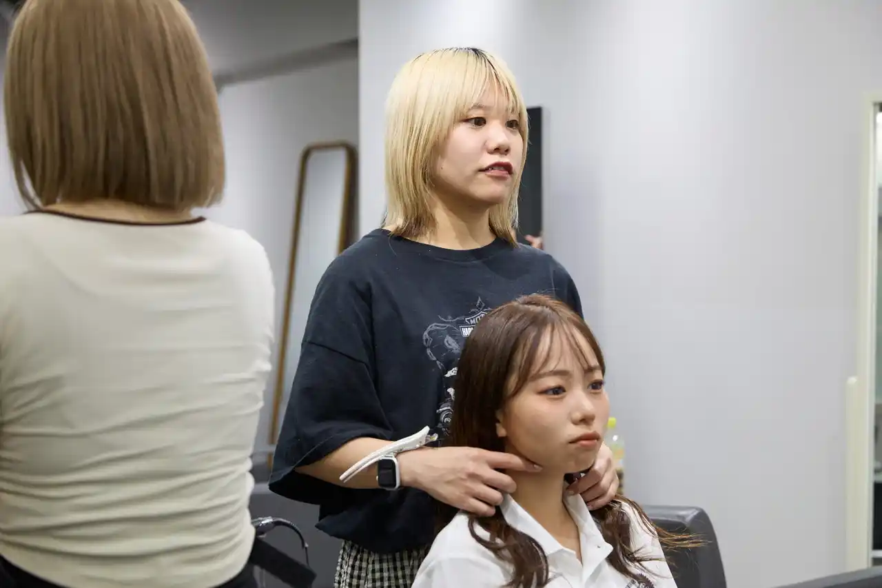 別日には、GRIFFINSのサポートスタッフのみなさんに、東京ミッドタウン六本木店所属ヘアスタイリストの田中真里菜、アシスタントの土谷優菜と田中樹、広尾店所属アシスタントの志賀彩子がヘアメイクを。チームのイヤーブックや活動記録に使用されるスタッフ写真の撮影も行いました。 |