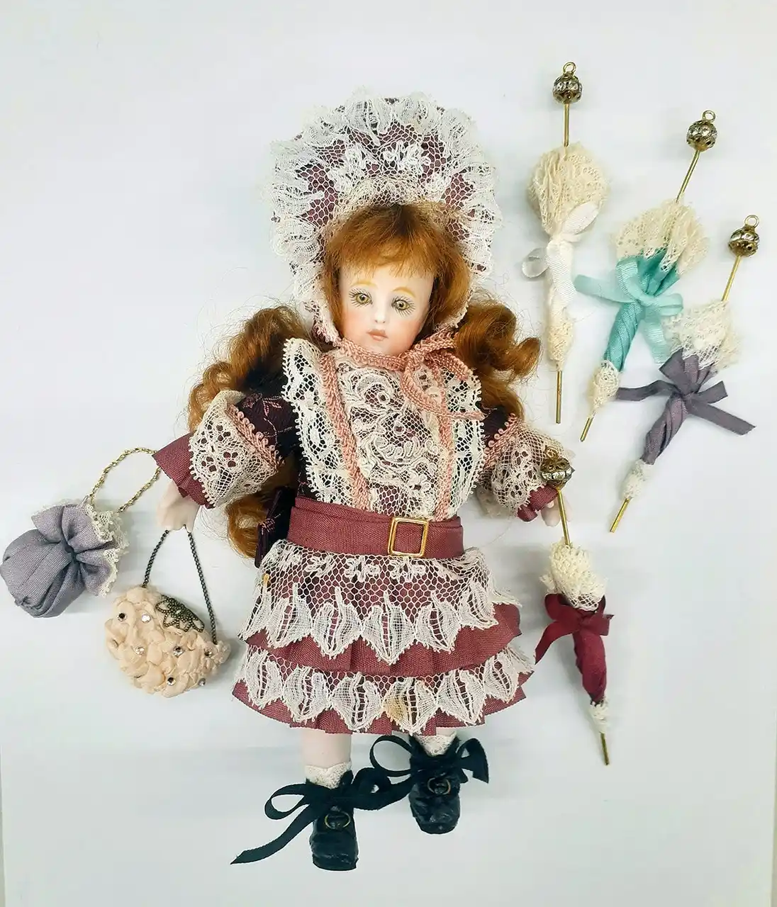 ※ミニチュアサイズ(約14cm)ドール用で 傘7cm・バッグ3cm程度の大きさとなります |