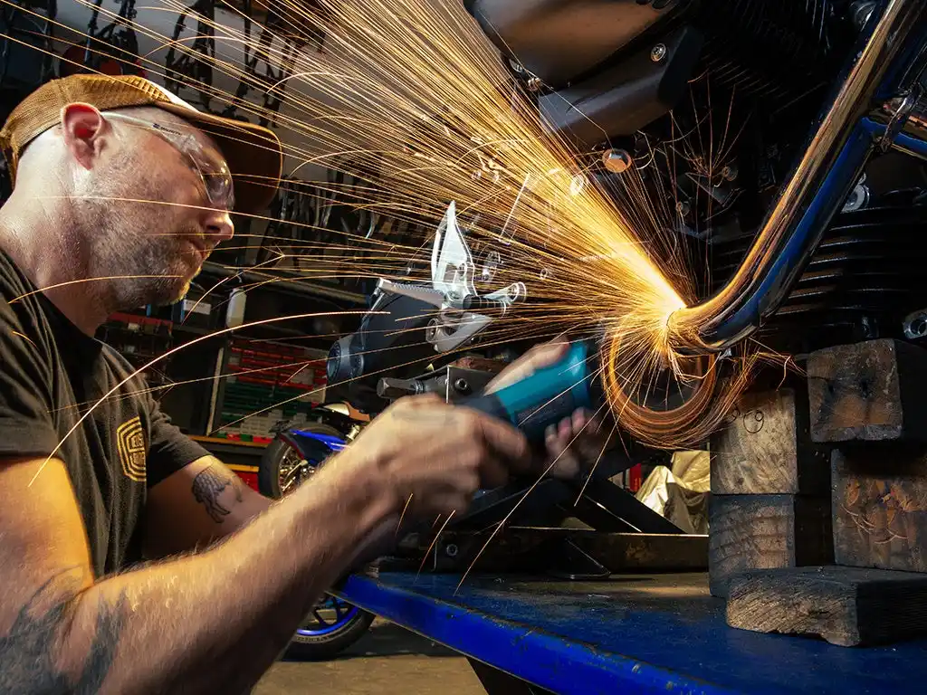 ジェレミーの工房で仕上げられた「Trail Breaker」。荒野へ挑む準備は整いました。あとはスロットルをひねるだけです。 |
