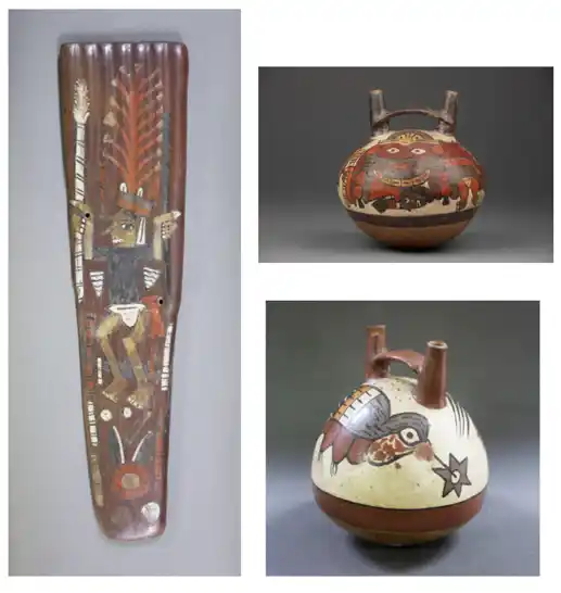1. アンタラ(土器製の儀式用パンフルート) ― 戦士(槍・投石器を持つ)の文様 |